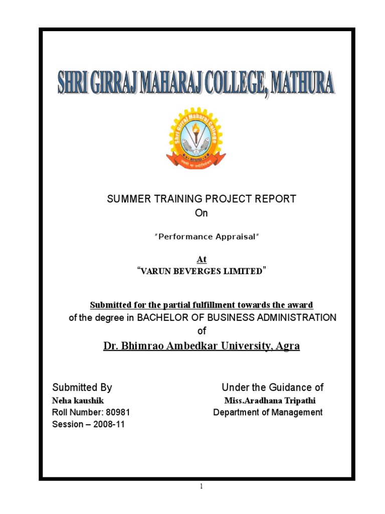 College, Mathura, Summer Training done with the VARUN BEVERGES LIMITED