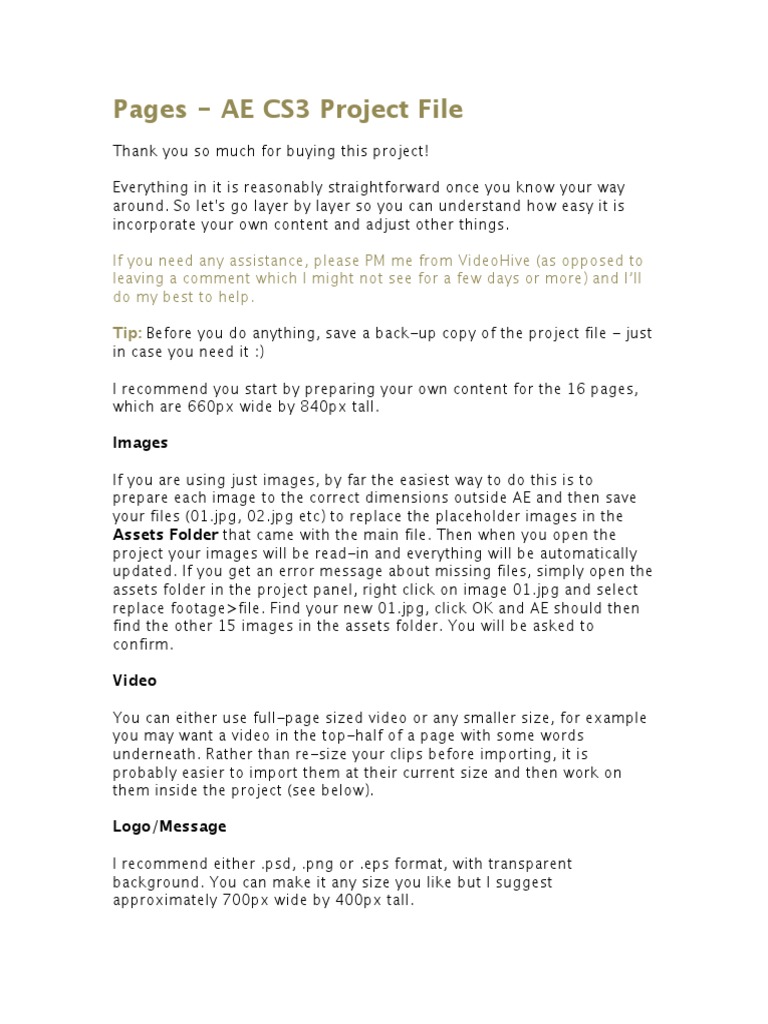 If you need any assistance, please PM me from VideoHive (as opposed to