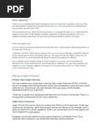 The most common type of glaucoma is called primary open angle glaucoma. This is when the