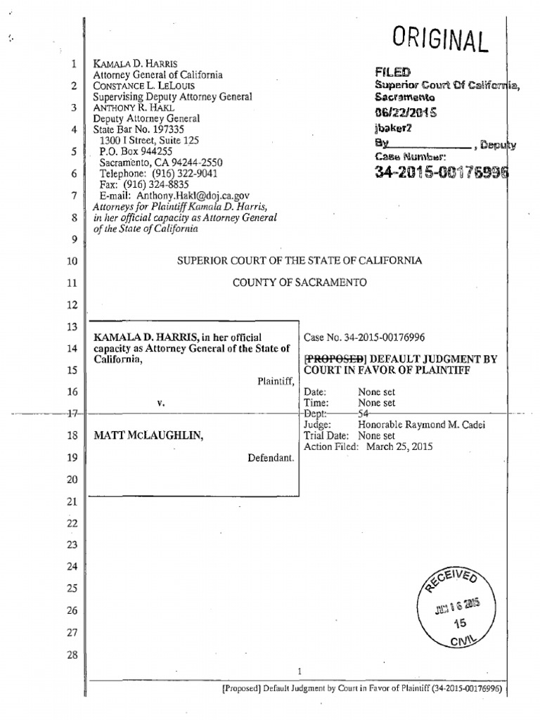 determined that plaintiff Kamala D. Harris, in her official capacity as Attorney General of the