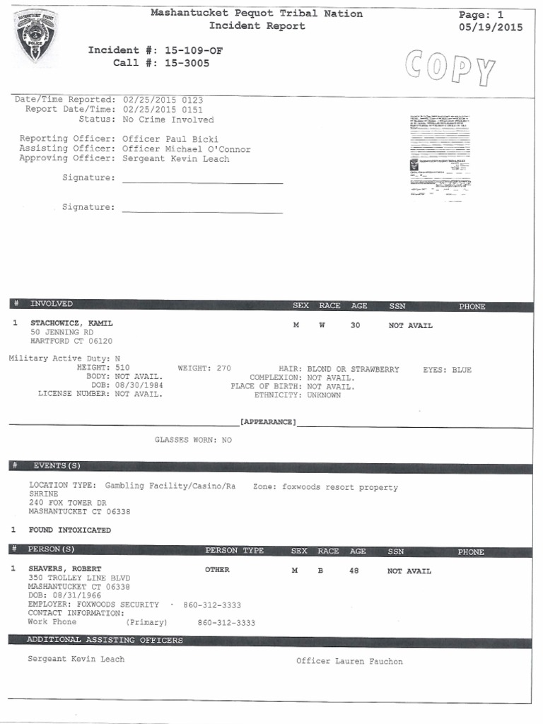 Stachowitz Foxwoods Reports