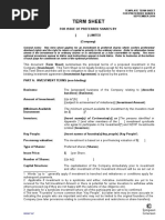 agreement. This Summary of Terms does not constitute an offer to sell nor a solicitation of an offer to buy