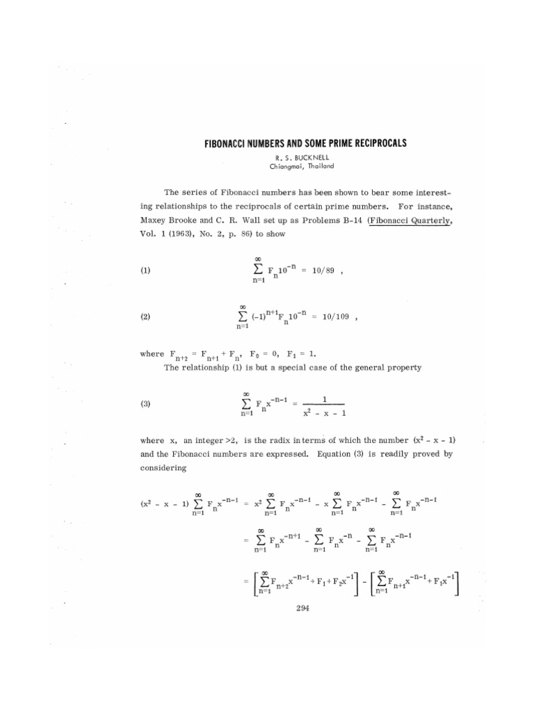 t h e s e r i e s of Fibonacci n u m b e r s and the n u m b e r