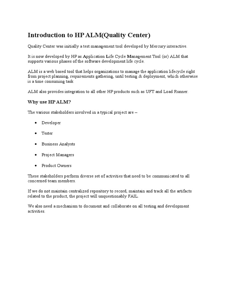 use ALM exclusively for testing purposes. It also provides integration with Unified