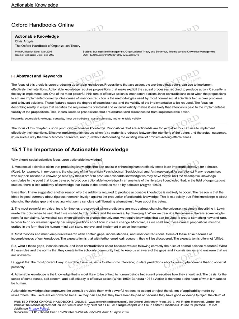 phenomena may be found in Argyris 1982, 1990, 1993, Argyris and Schn 1996.
