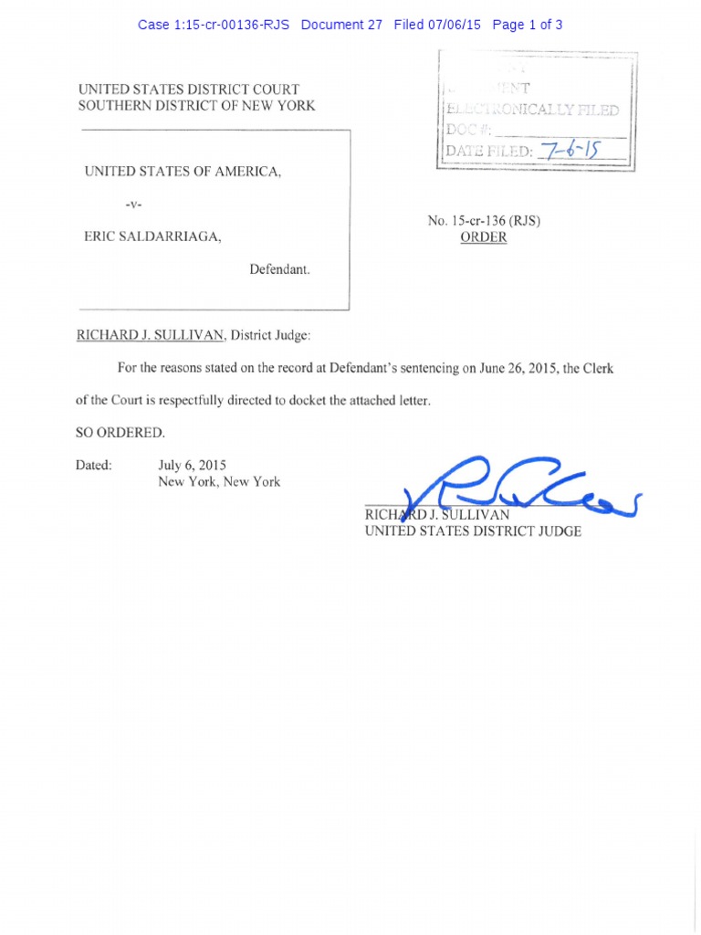 Case 1:15-cr-00136-RJS Document 27 Filed 07/06/15 Page 1 of 3