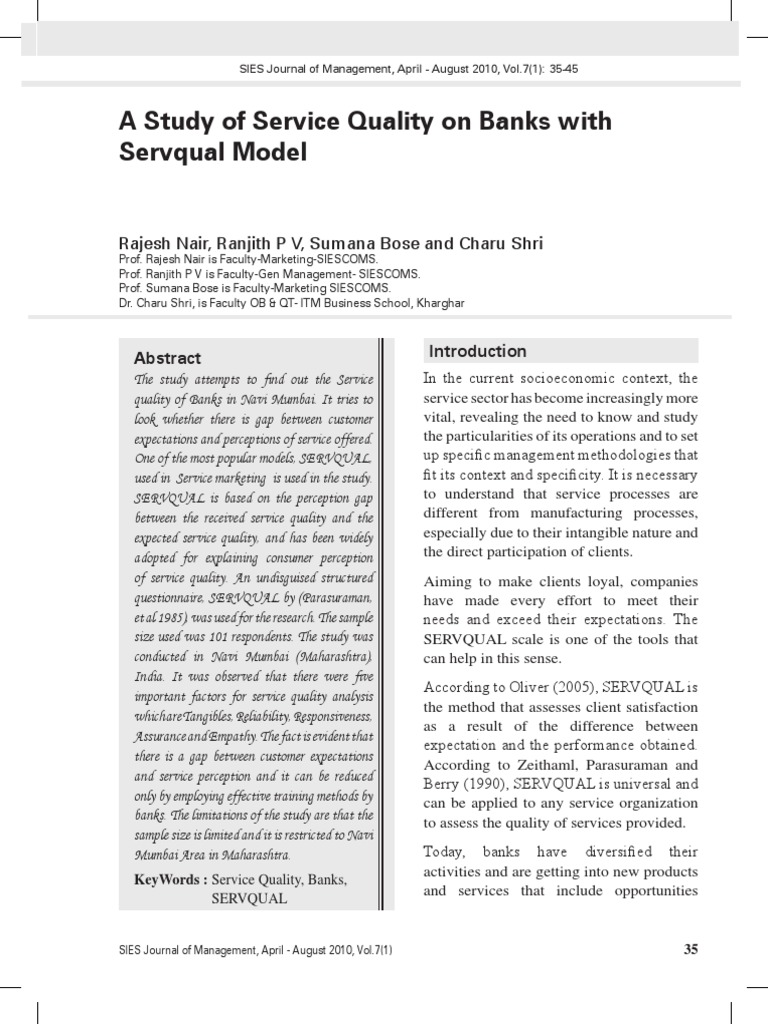 KeyWords : Service Quality, Banks,