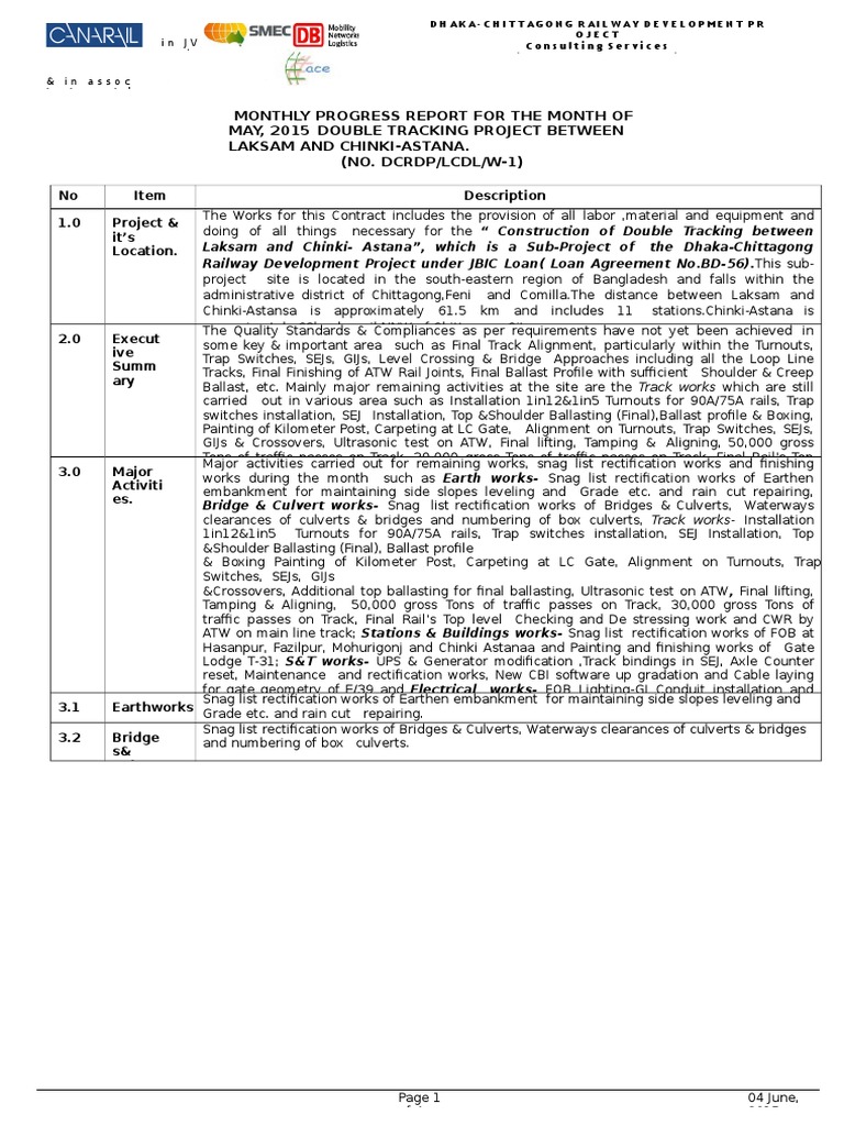 Railway Development Project under JBIC Loan( Loan Agreement No.BD-56).This subproject