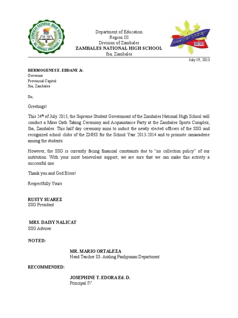 This 24th of July 2013, the Supreme Student Government of the Zambales National High School will