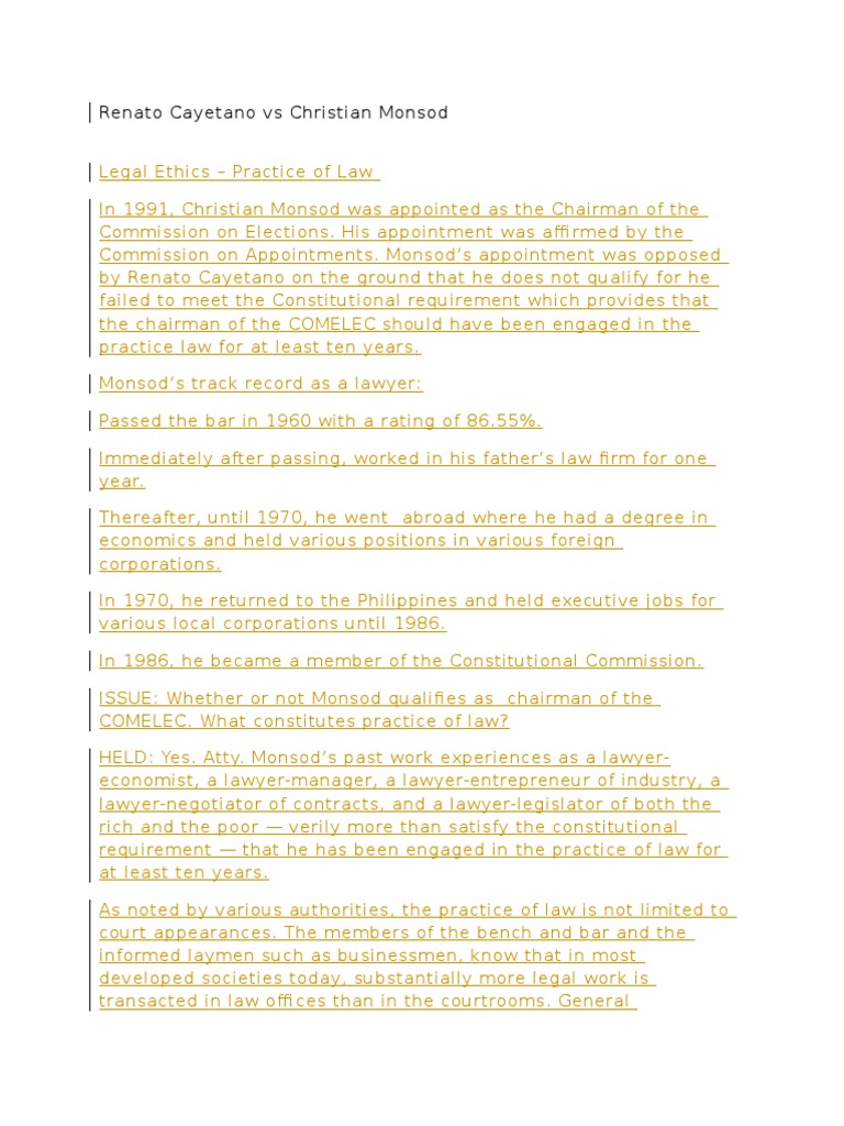 HELD: Yes. Atty. Monsods past work experiences as a lawyereconomist, a lawyer-manager, a lawyer-entrepreneur of industry, a