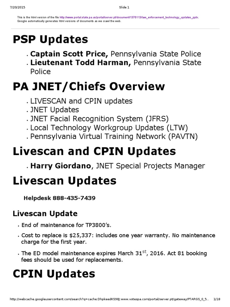 Thisisthehtmlversionofthefilehttp://www.portal.state.pa.us/portal/server.pt/document/1376113/law_enforcement_technology_updates_pptx.