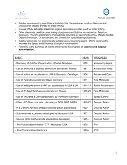 - Use of aniline as accelerator in USA & Germany : Oenslager.