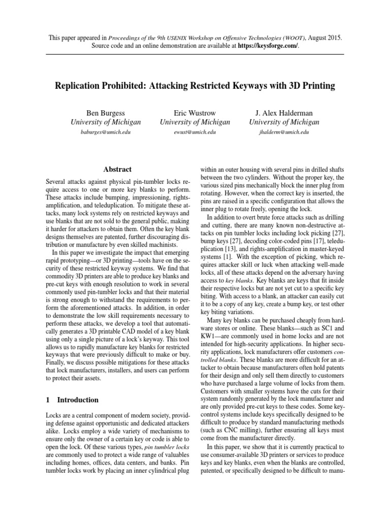 Replication Prohibited: Attacking Restricted Keyways With 3D Printing