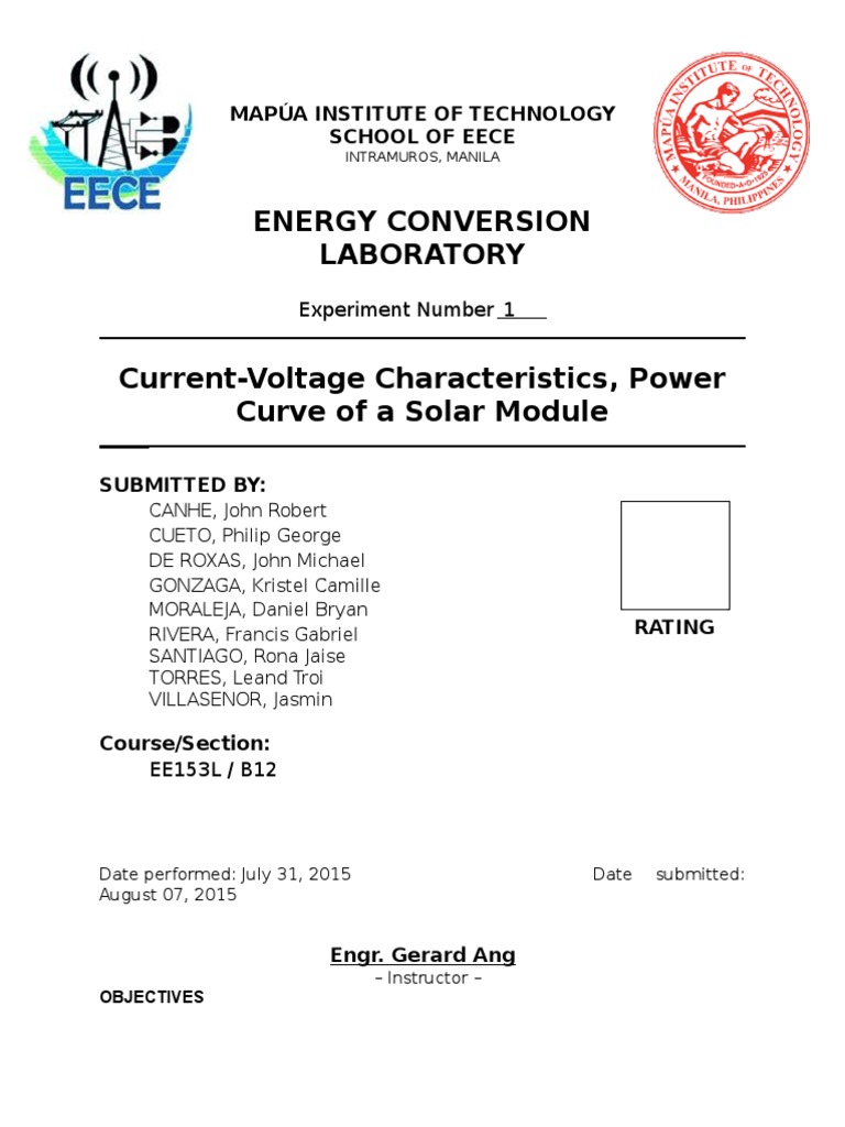 1. To observe the relationship of current, voltage, and power in a solar cell.