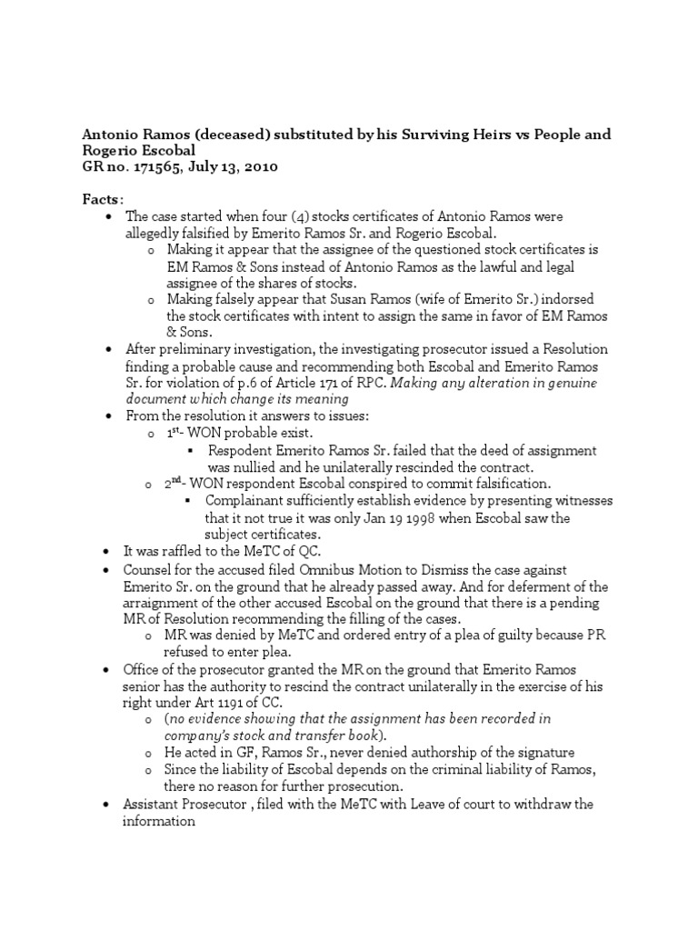 The case started when four (4) stocks certificates of Antonio Ramos were