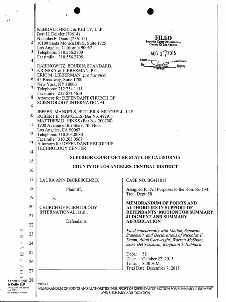 DeCrescenzo: Scientology Motion For Summary Judgment 2