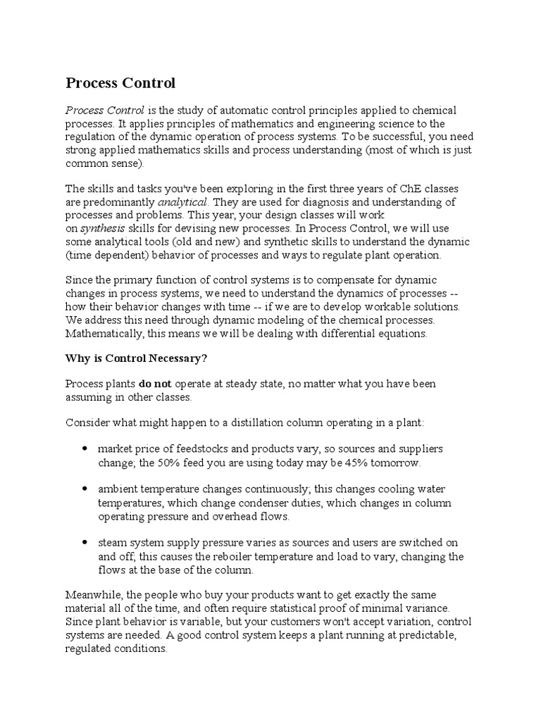 regulation of the dynamic operation of process systems. To be successful, you need