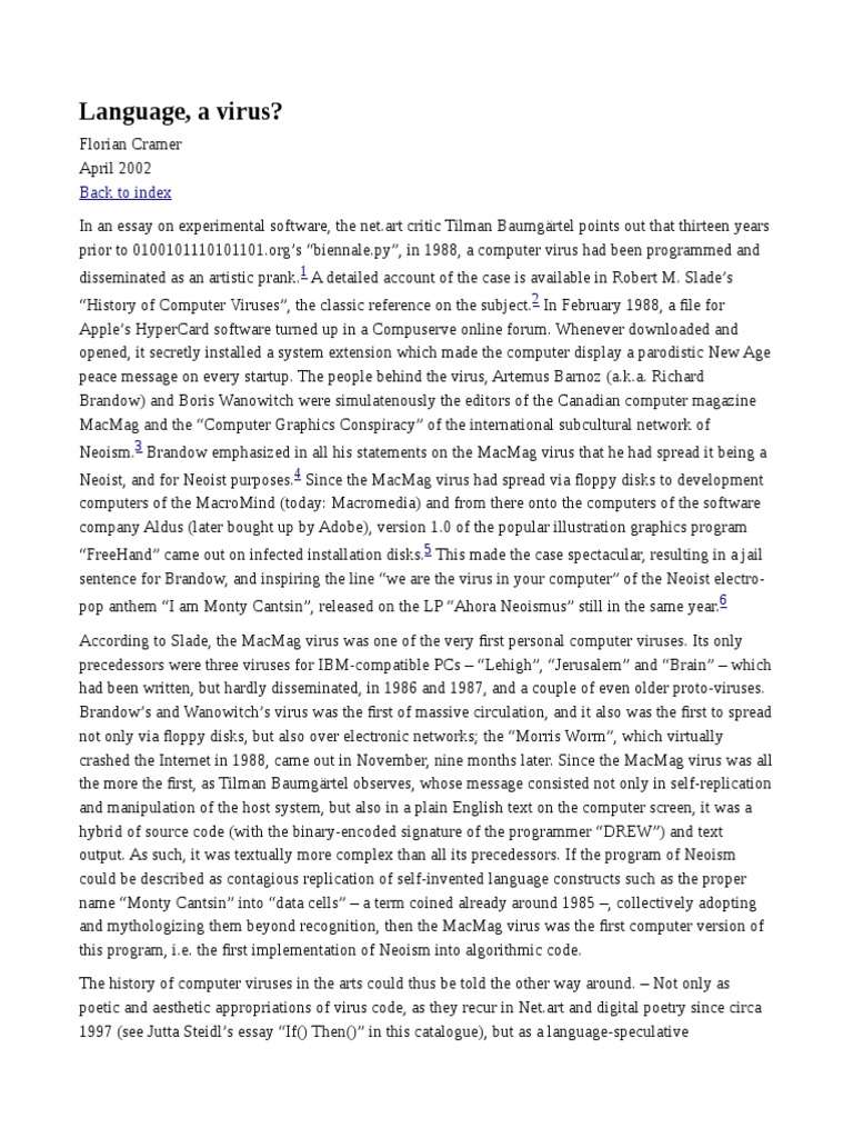 that language is a virus thus reads as modernist rewording of a language theory common, until the 17th