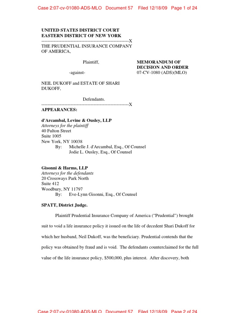 Prudential V Dukoff 12-18-09