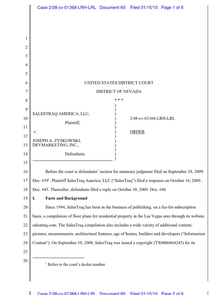5 Inc. (“devMarketing”). In 2007, defendants created a property database for the Las Vegas area and