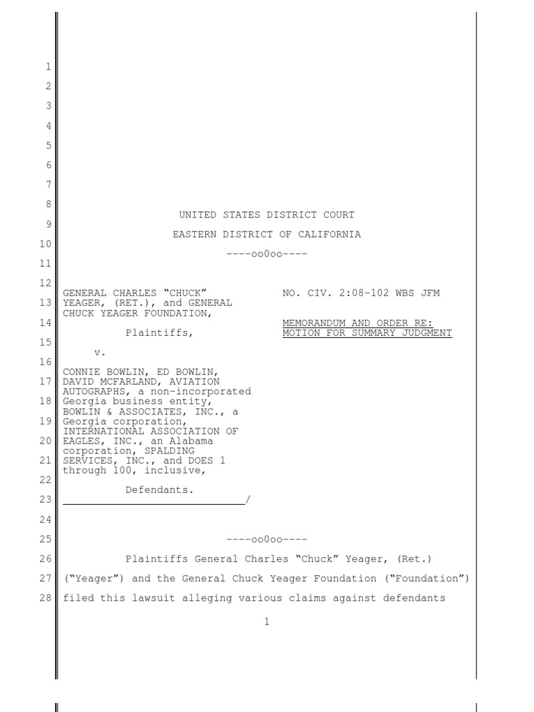 GENERAL CHARLES “CHUCK” NO. CIV. 2:08-102 WBS JFM