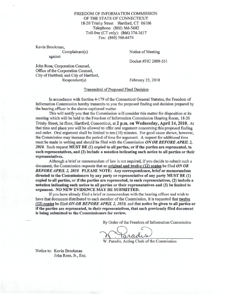 INFORMATION COMMISSIONOF THE STATE OF CONNECTICUT