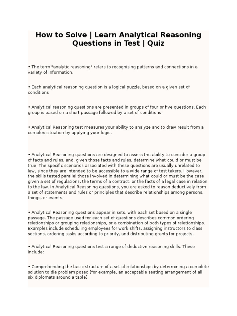 to the law. In Analytical Reasoning questions, you are asked to reason deductively from