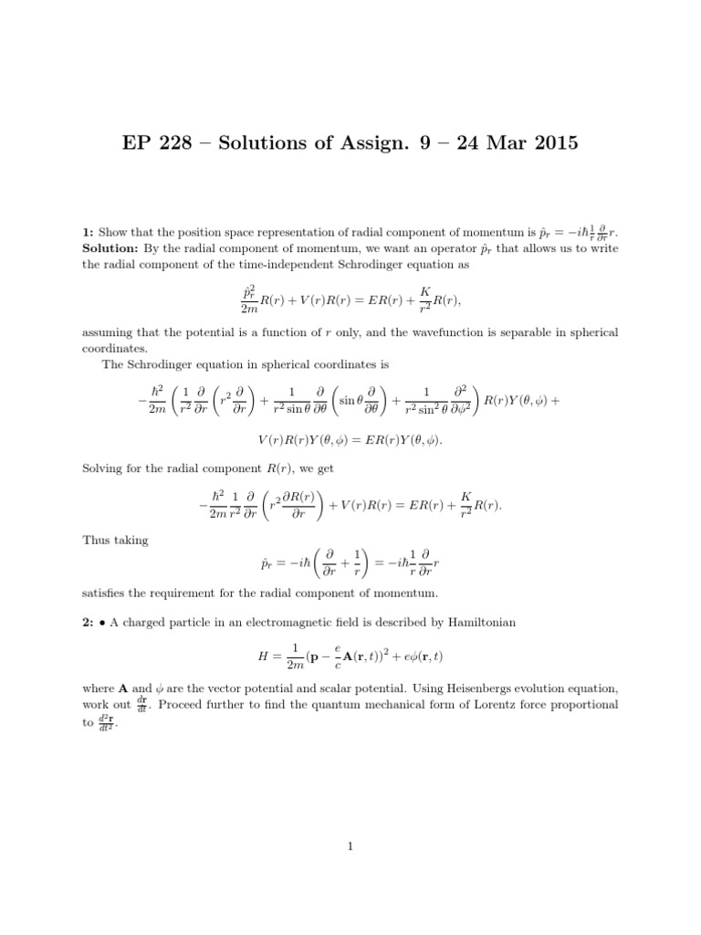 1: Show that the position space representation of radial component of momentum is pr = i~ 1r r