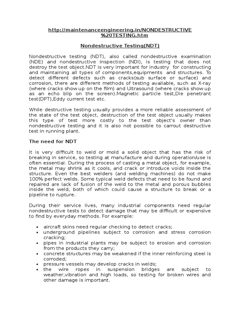 destroy the test object.NDT is very important for industry for constructing
