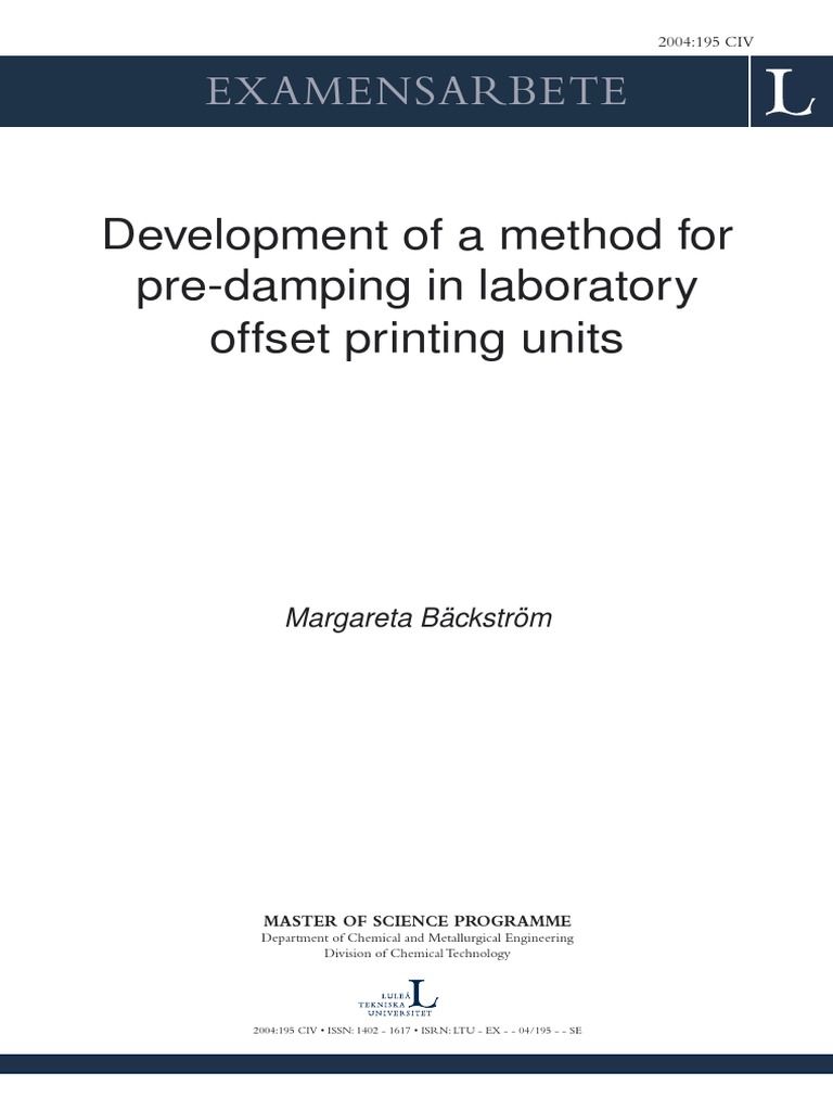 paperboard. The title is Development of a method for pre-face application in laboratory printing.