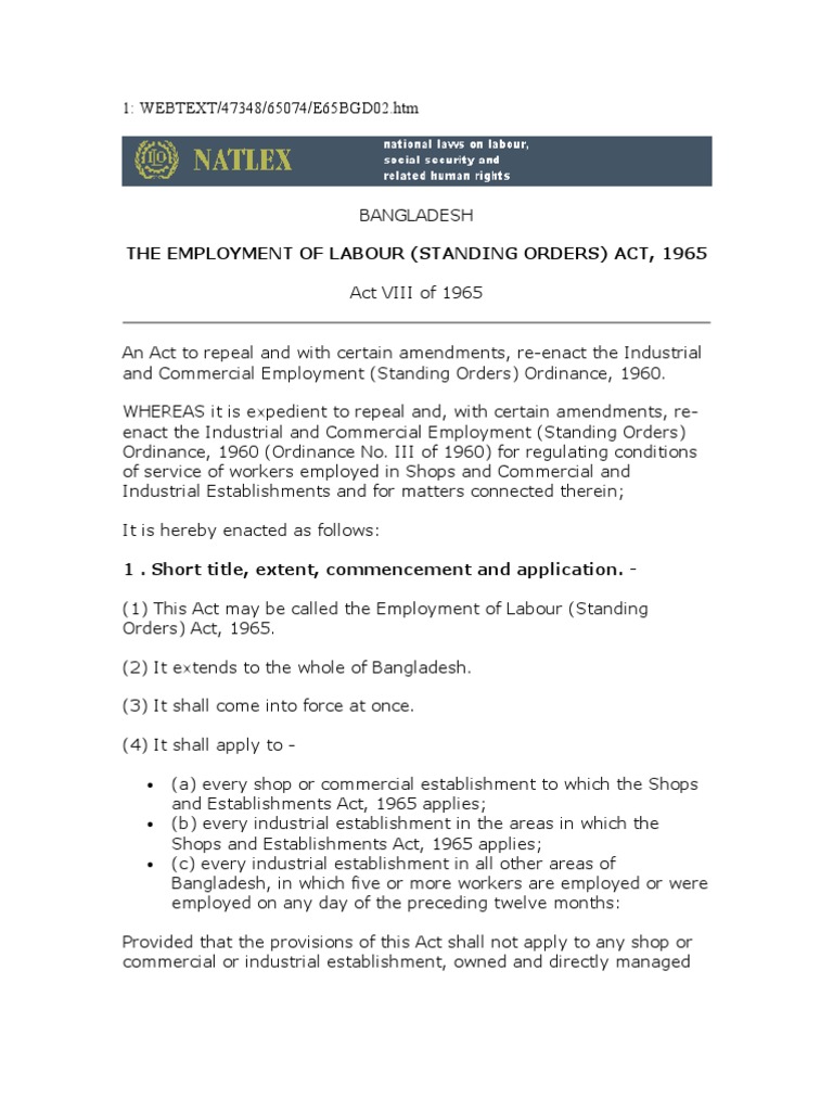THE EMPLOYMENT OF LABOUR (STANDING ORDERS) ACT, 1965