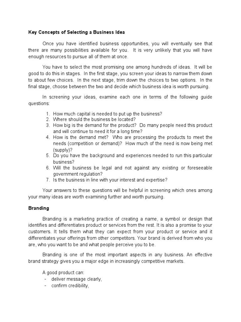 good to do this in stages. In the first stage, you screen your ideas to narrow them down