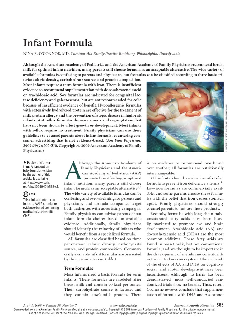 guidelines to counsel parents about infant formula, countering consumer advertising that is not evidence-based. (Am Fam Physician.