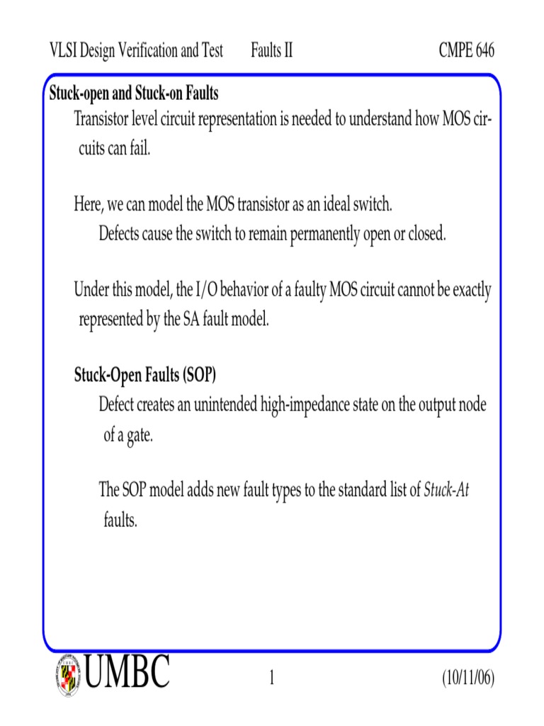 Under this model, the I/O behavior of a faulty MOS circuit cannot be exactly