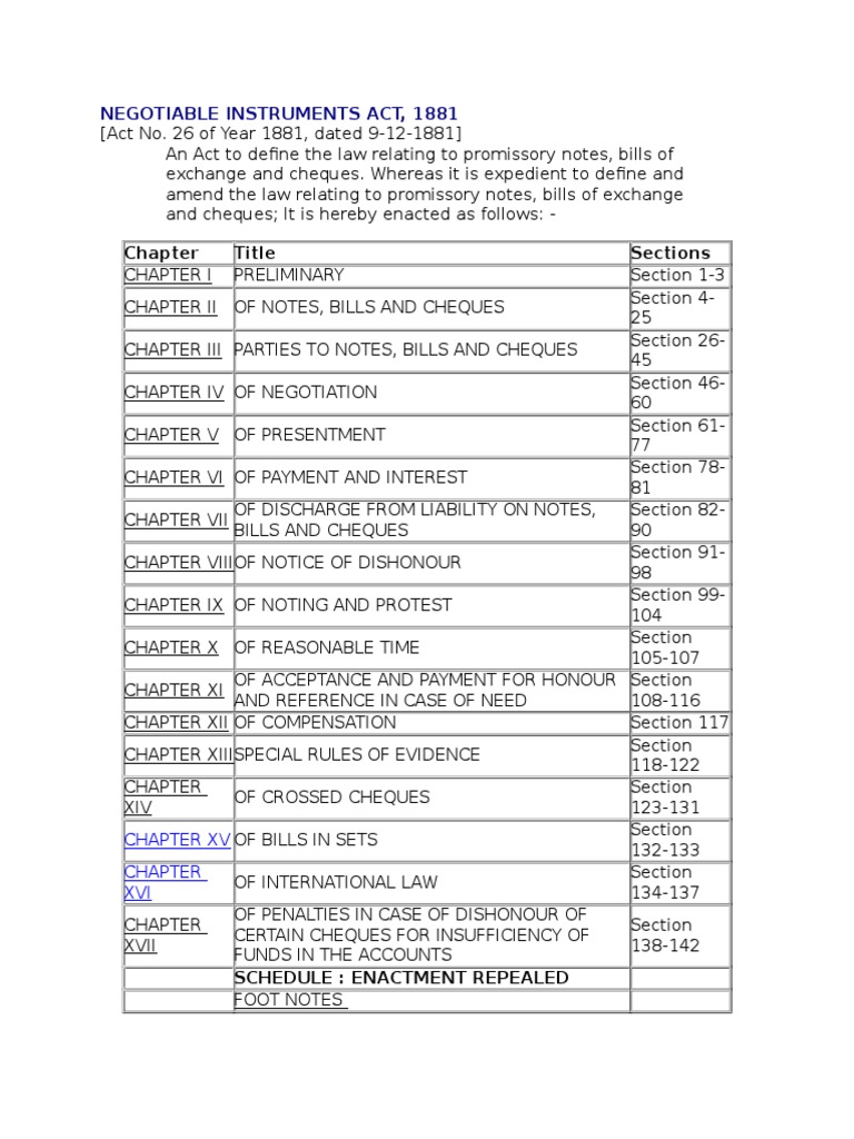 NEGOTIABLE INSTRUMENTS ACT, 1881