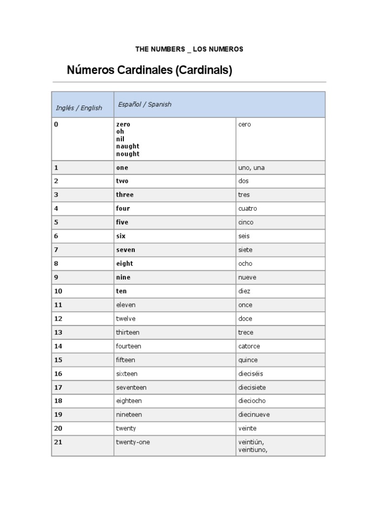 Nmeros Cardinales (Cardinals)