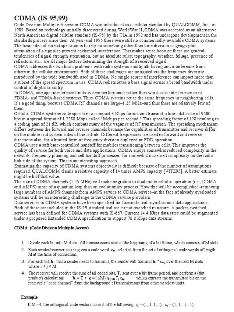 Code Division Multiple Access or CDMA was introduced as a cellular standard by QUALCOMM, Inc., in