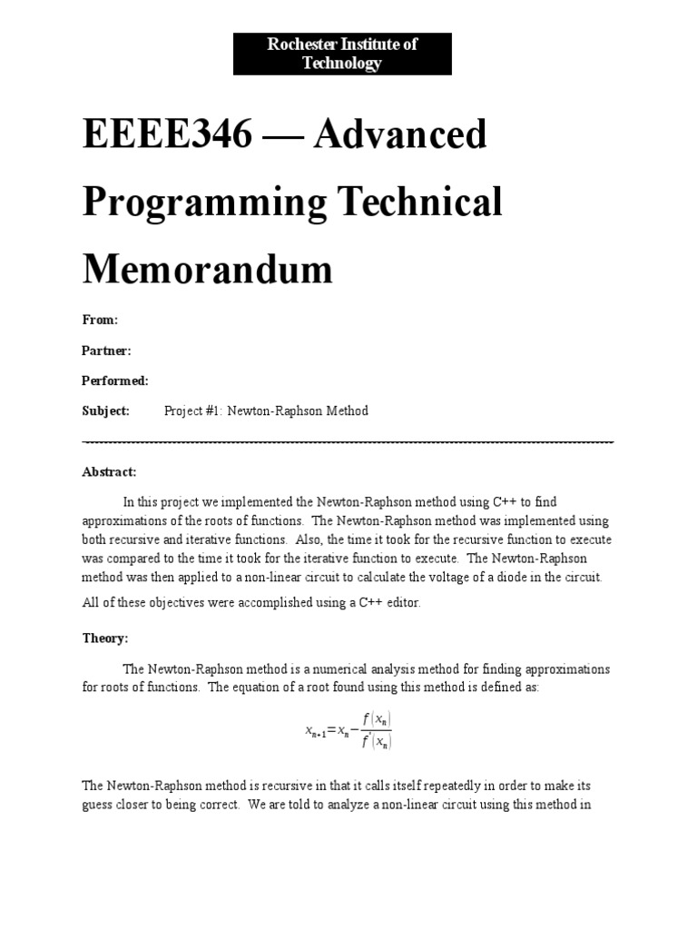 functions as well as the voltage of a diode in a given non-linear circuit. The assignment was