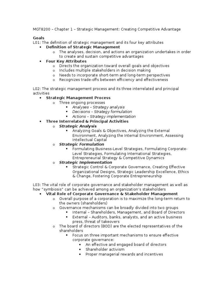 MGT8200 Chapter 1 Strategic Management: Creating Competitive Advantage