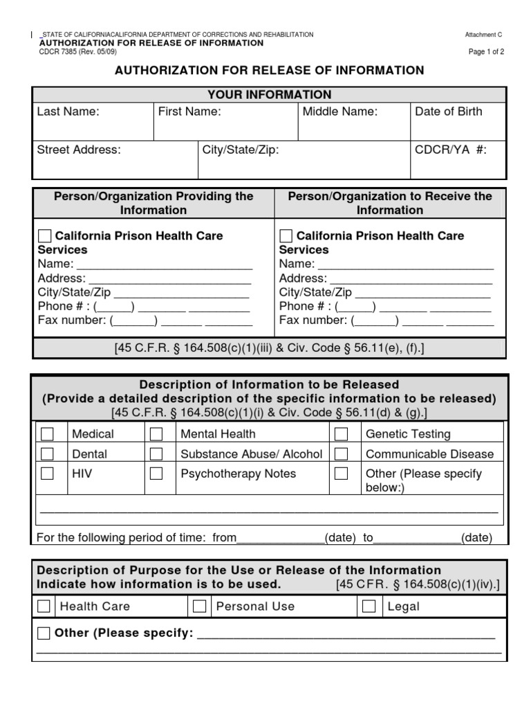 CDCR 7385 (Rev. 05/09) Page 1 of 2
