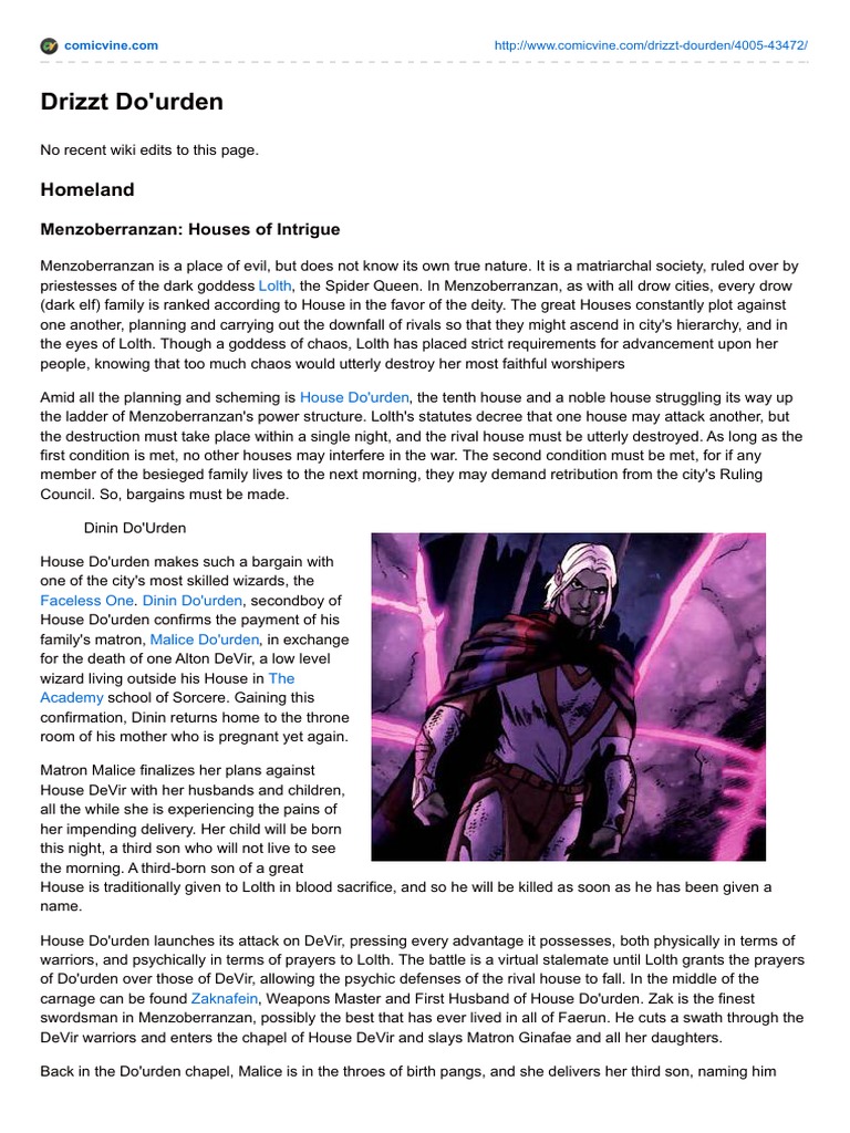 Drizzt. In the hallways of House DeVir, the newborn babe's older brothers complete the slaughter of the DeVir