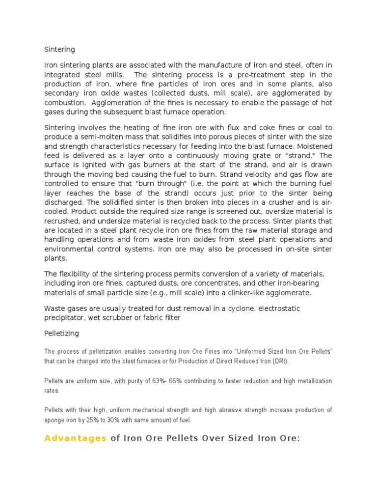 integrated steel mills. The sintering process is a pre-treatment step in the