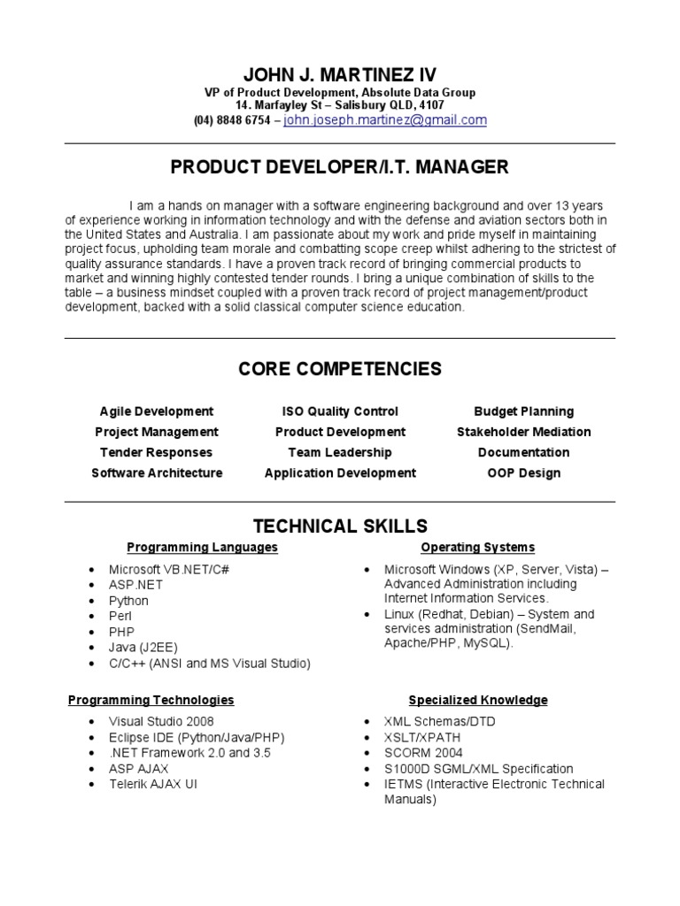 Current duties include managing software development efforts, individual programmers and team