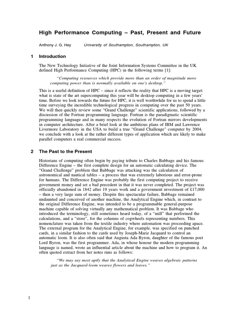 time. Before we look towards the future for HPC, it is well worthwhile for us to spend a little