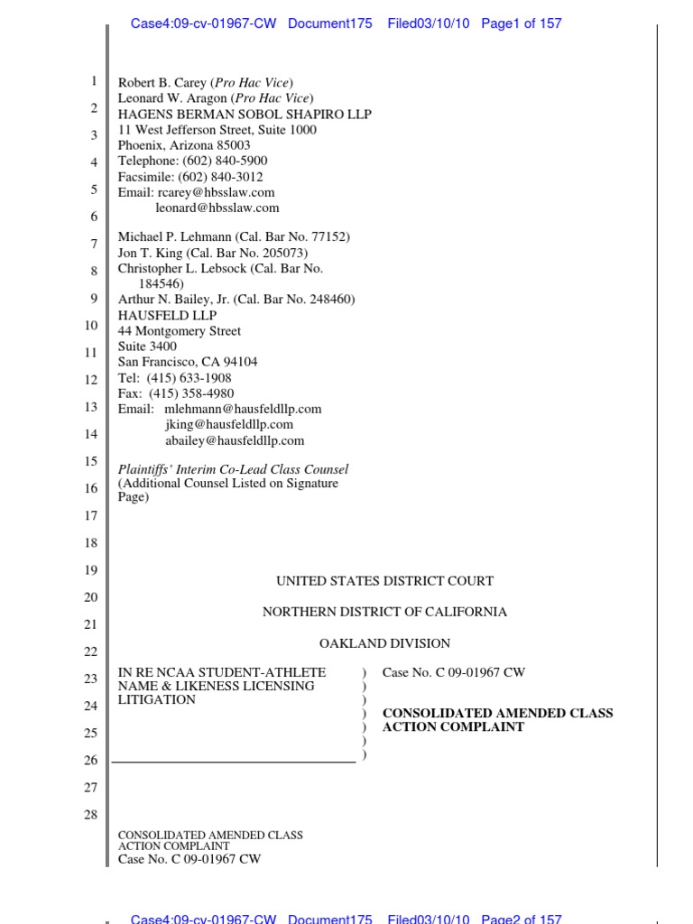 O'Bannon v. NCAA Amended Class Action March 10 2010