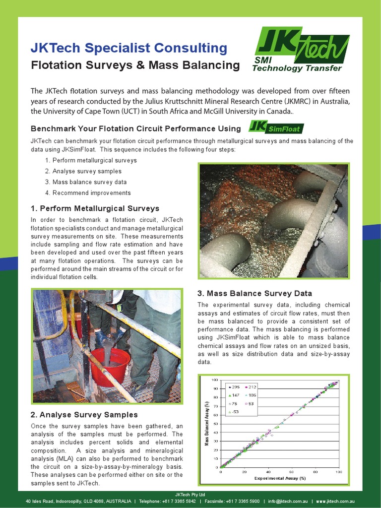 The JKTech flotation surveys and mass balancing methodology was developed from over fifteen