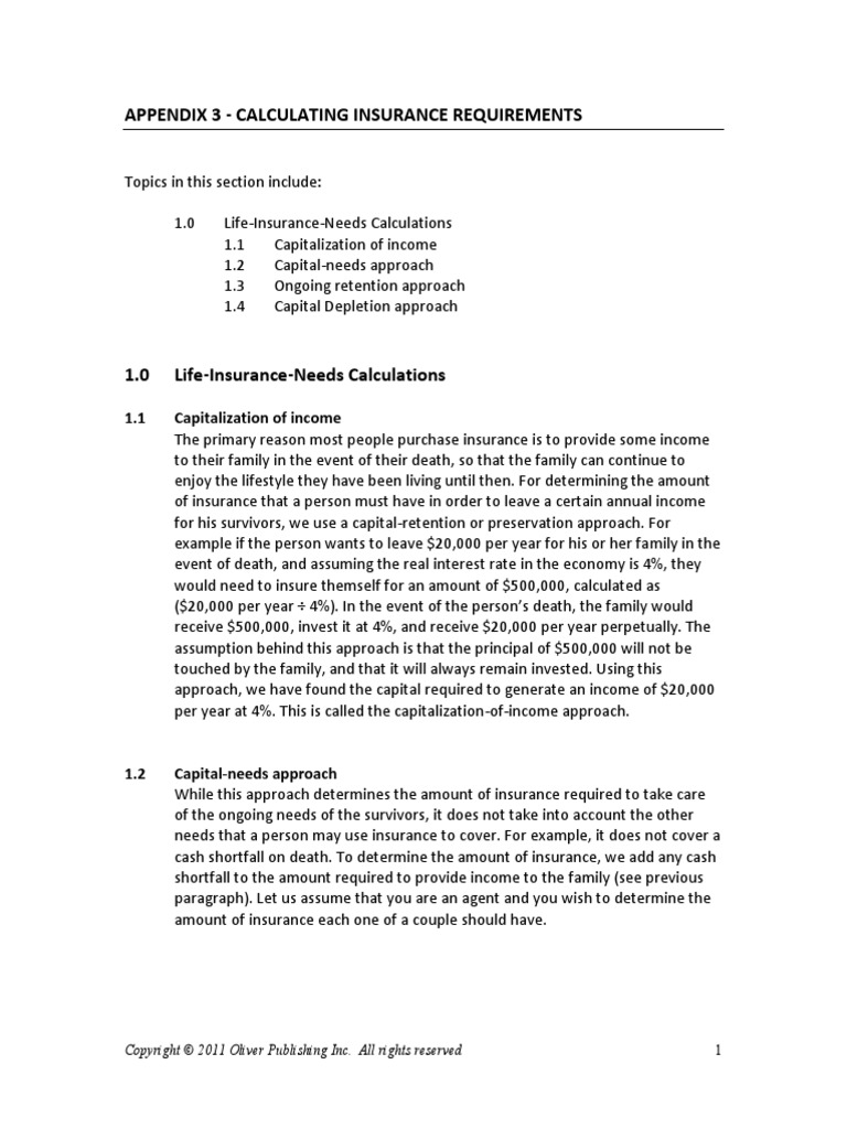 While this approach determines the amount of insurance required to take care