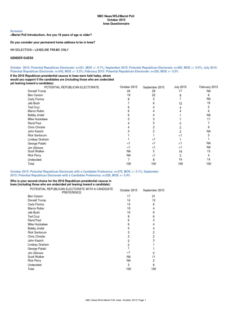 NBC News/WSJ/Marist Poll: Iowa October 2015; Page 1