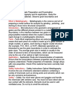 magnifications is called metallography. Metallography has two major aspects: