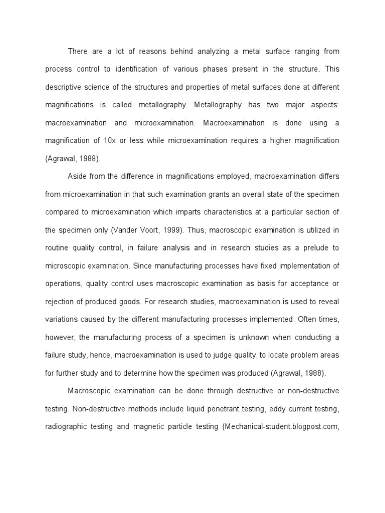 the specimen only (Vander Voort, 1999). Thus, macroscopic examination is utilized in